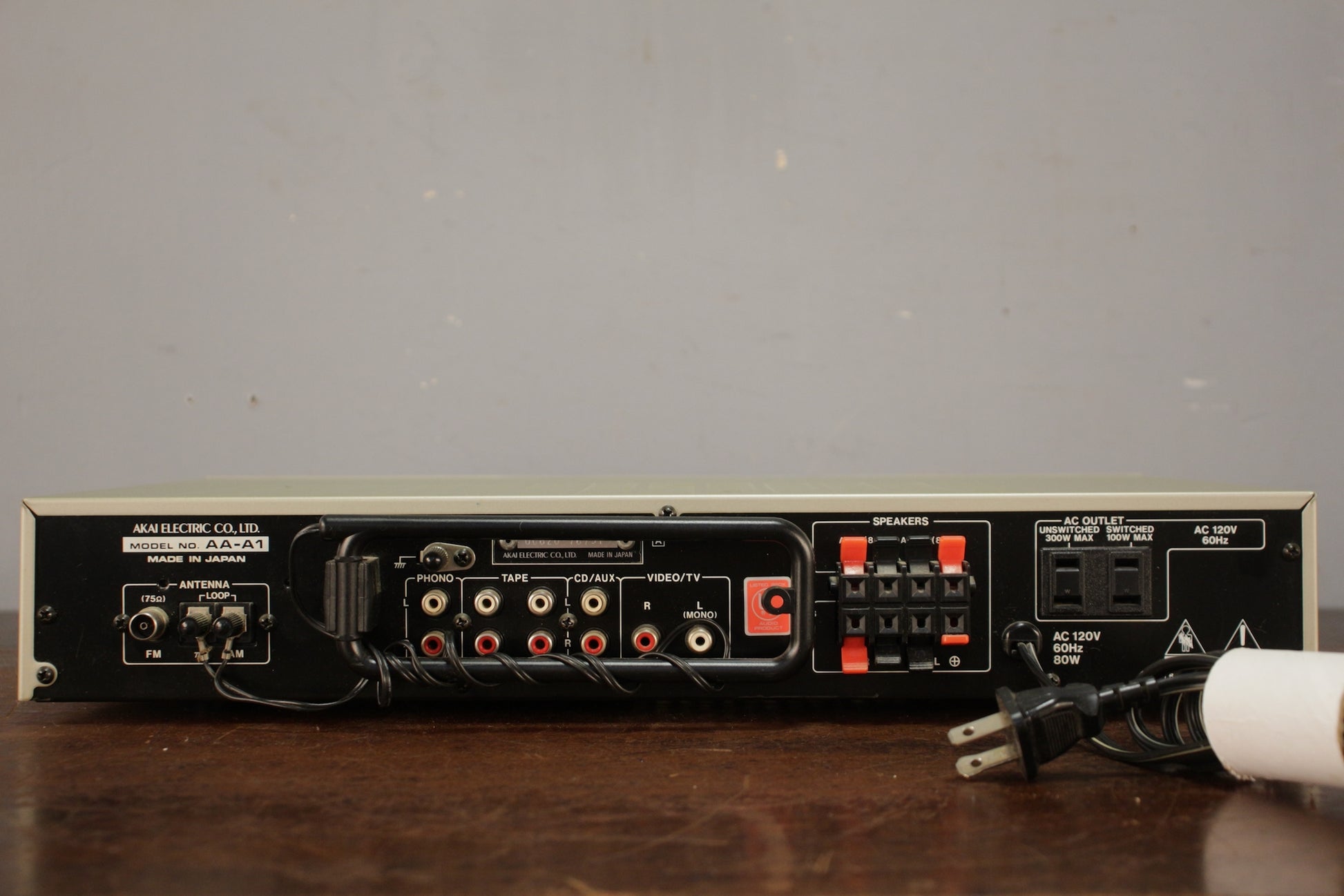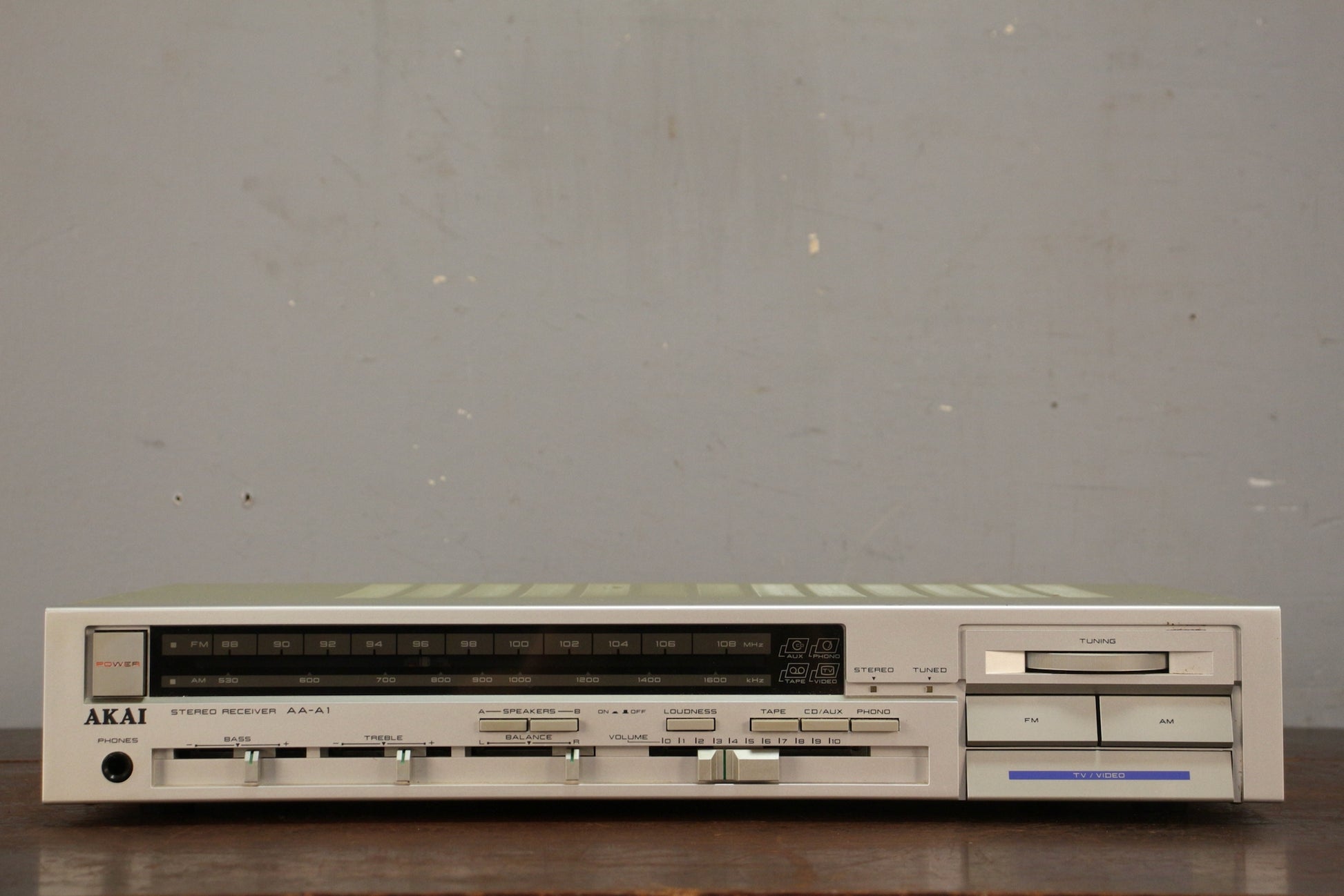 Cool Akai receiver. Model AA-A1 - likely dating to the 1990s. In good working condition. Some general aesthetic wear throughout. Has been lightly tested and seems functional but has not been refurbished so we can't guarantee long-term function.