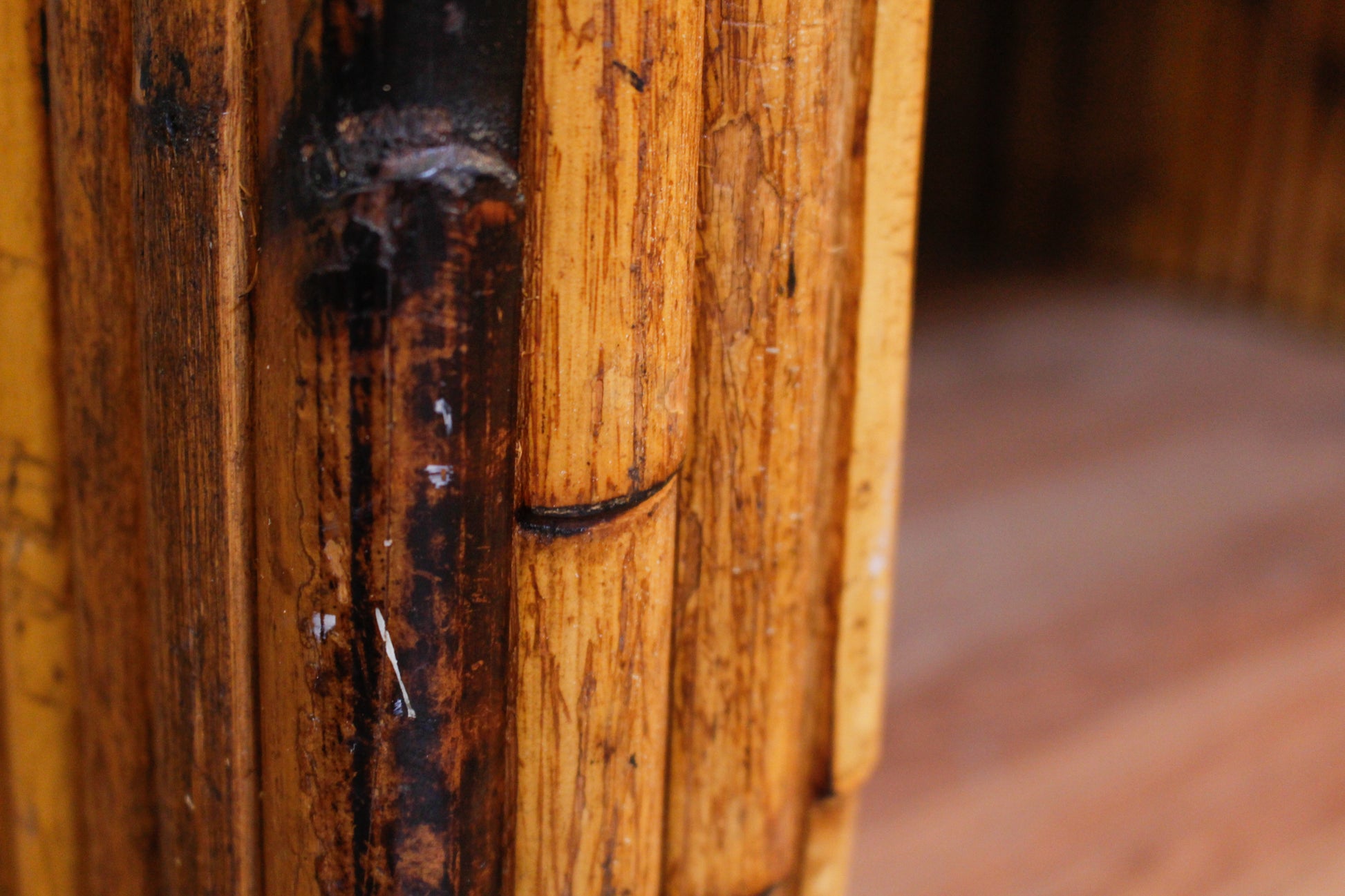 Breezy square coffee table to add some bohemian or Hollywood Regency flair to a living room. Large but not TOO large, made of chic split reed bamboo. Some scratching and surface wear throughout that gives it a well-lived beach house feel. Disclaimer: This piece is not available to view in-store. It is for sale online only, and by appointment at our NJ warehouse. Once purchased, it will be transported to our Manhattan store for pick-up or delivery. All sales are FINAL. Please call if you have any questions regarding the piece prior to purchase or to place a 15% deposit to see the piece in-person in our store.