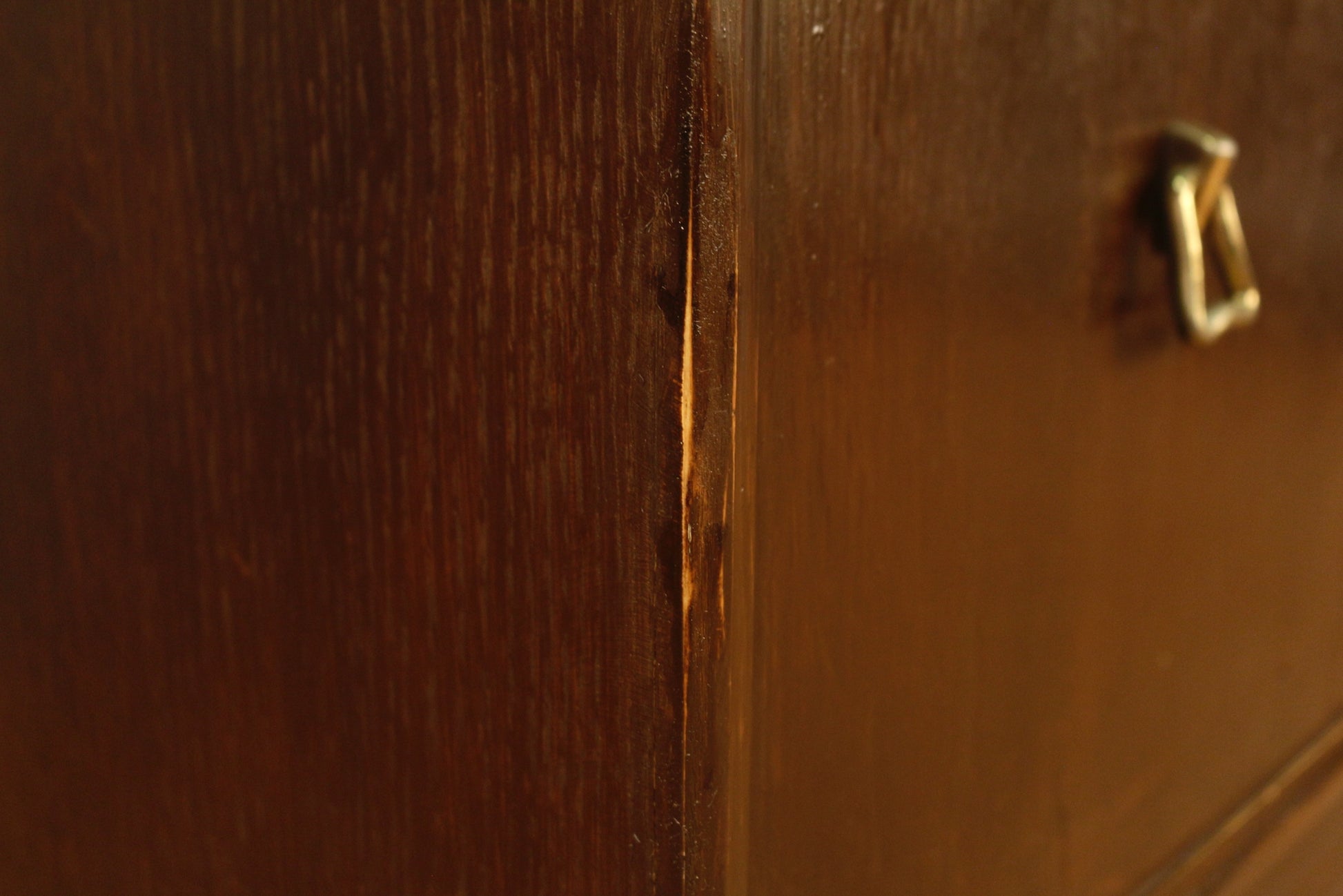 This piece appears to be a small cabinet but is, in fact, a compact cedar-lined chest by Lane. Features a dark wood finish and brass hardware. In good overall condition with some minor wear to the finish along the body.