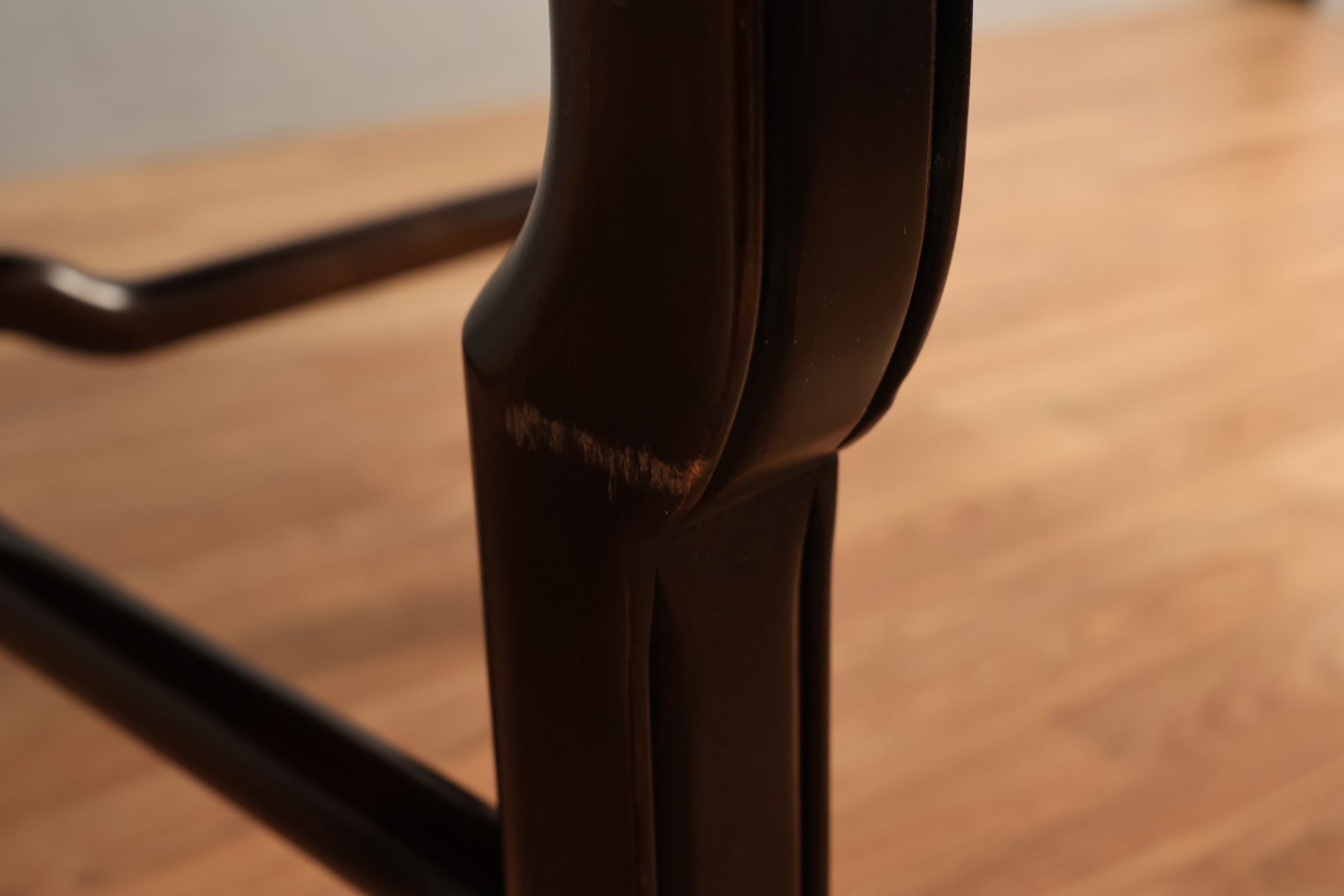 Stylish mid-sized dining table with eye-catching burl wood top! Complete with shapely black lacquered frame. Sits slightly lower than average dining table height. In good condition, light wear. Disclaimer: This piece is not available to view in-store. It is for sale online only, and by appointment at our NJ warehouse. Once purchased, it will be transported to our Manhattan store for pick-up or delivery. All sales are FINAL. Please call if you have any questions regarding the piece prior to purchase or to place a 15% deposit to see the piece in-person in our store.