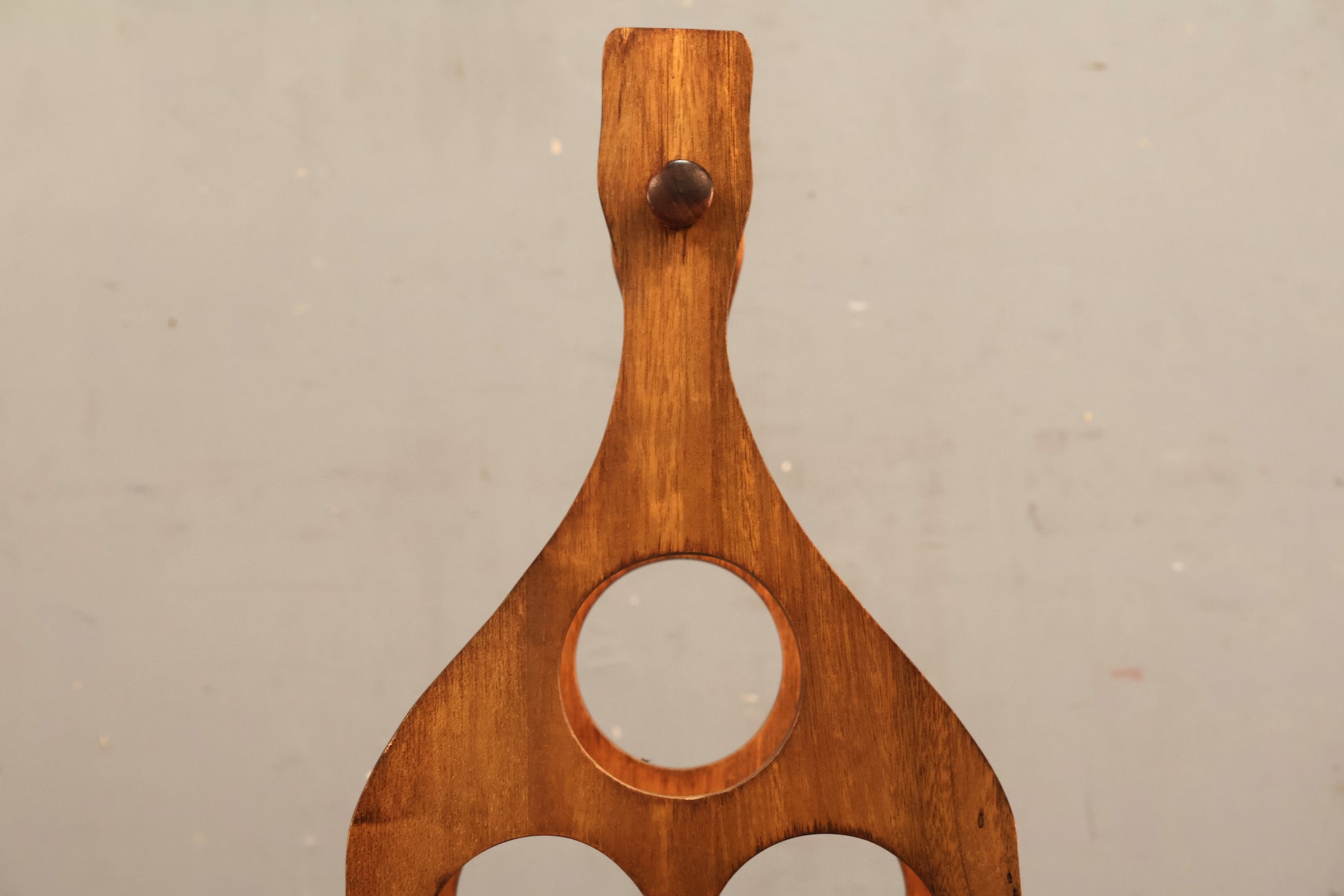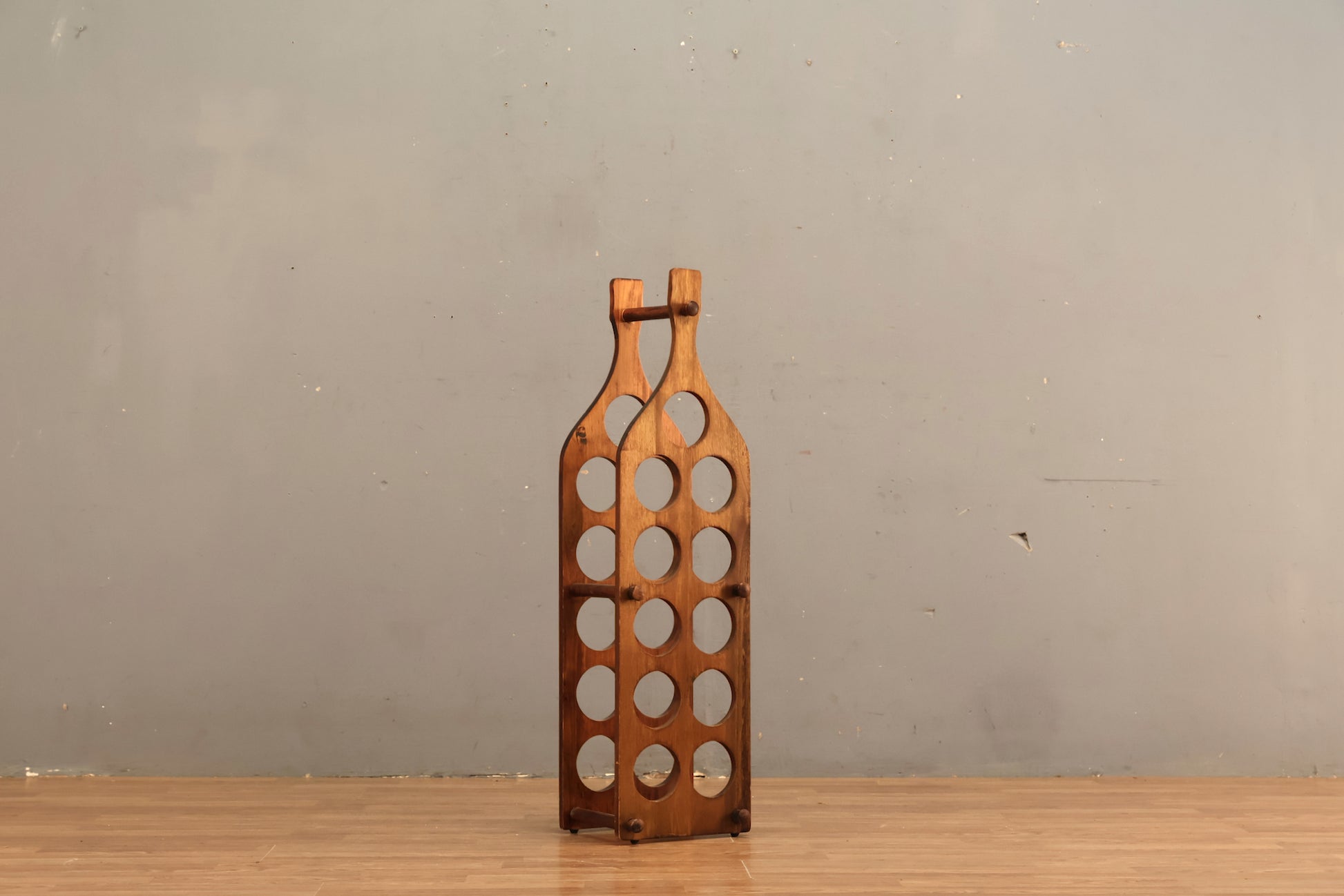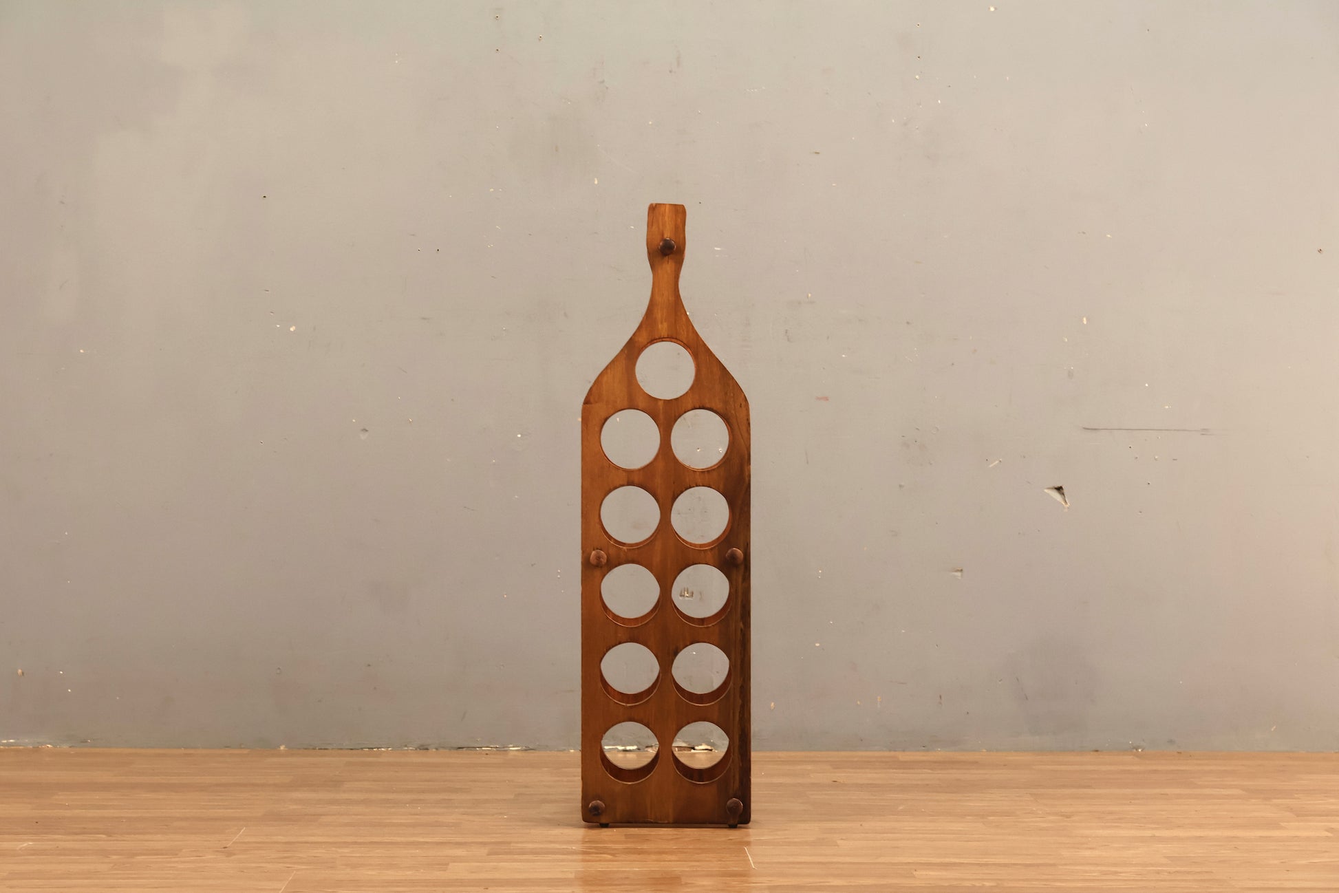 Classic slim wine rack that holds eleven bottles. Nice warm wood that will suit many spaces well. In good condition, light wear.