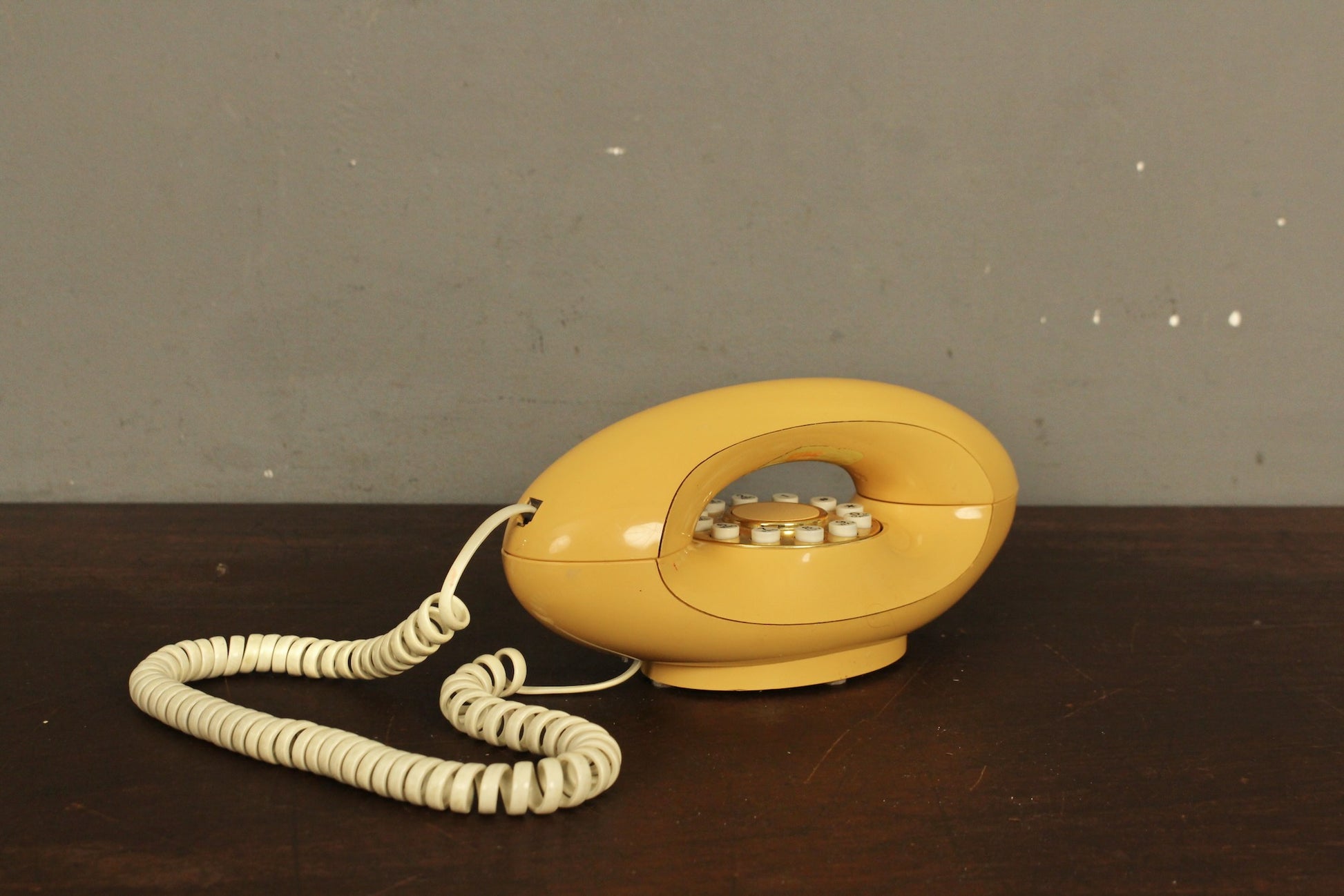 Retro Genie touch-tone telephone in a peachy hue. Made by the American Telecommunications Corp (ATC) in the late 1960s through the early 1980s. In good condition, some fading to gold dial face.