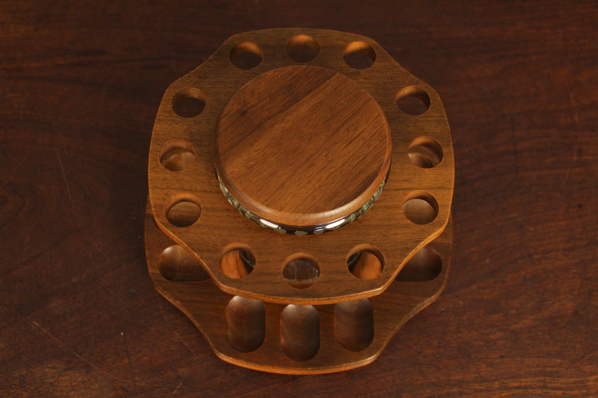 Very cool wooden pipe display with jar in the center for your tobacco! Rotates. In good condition.