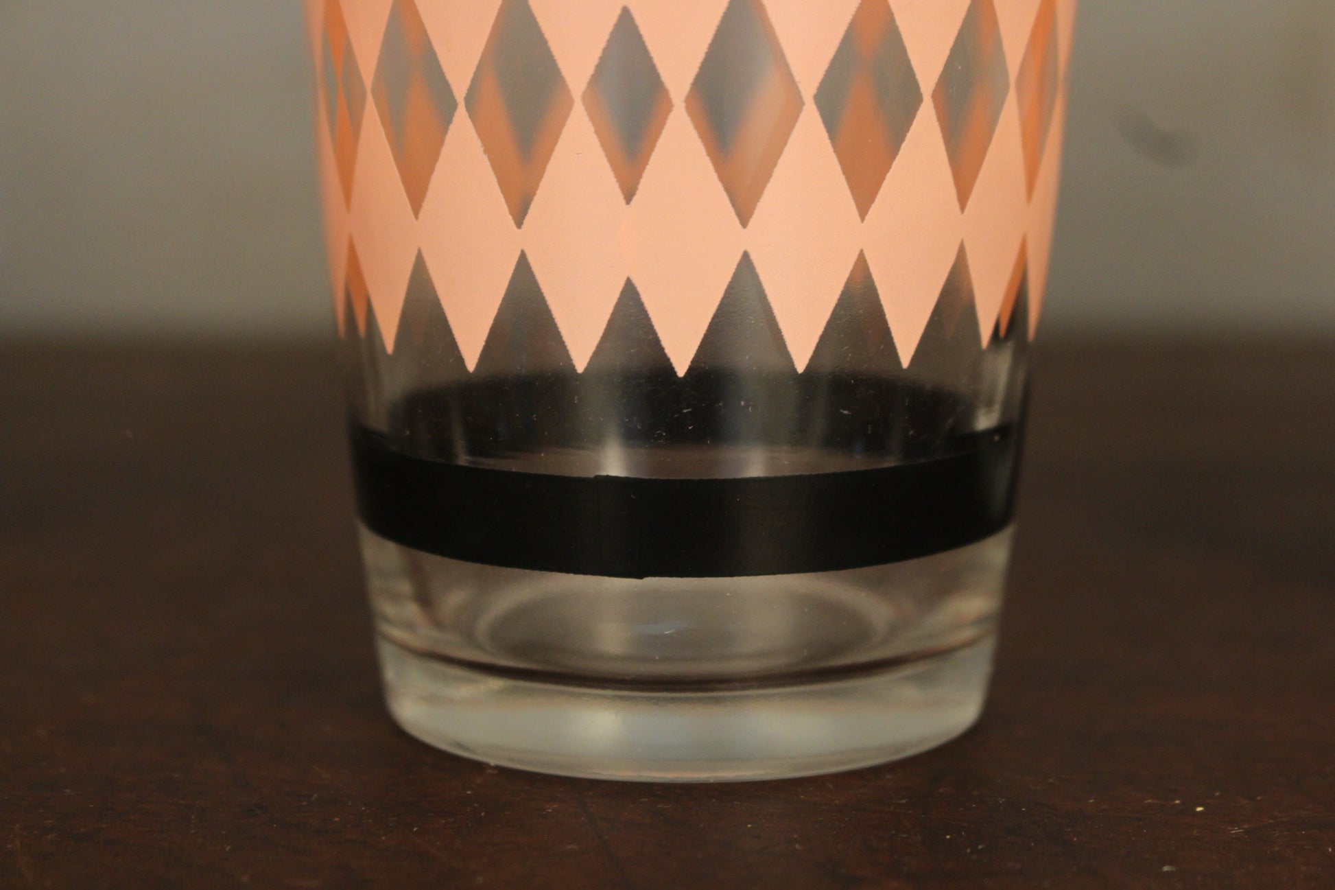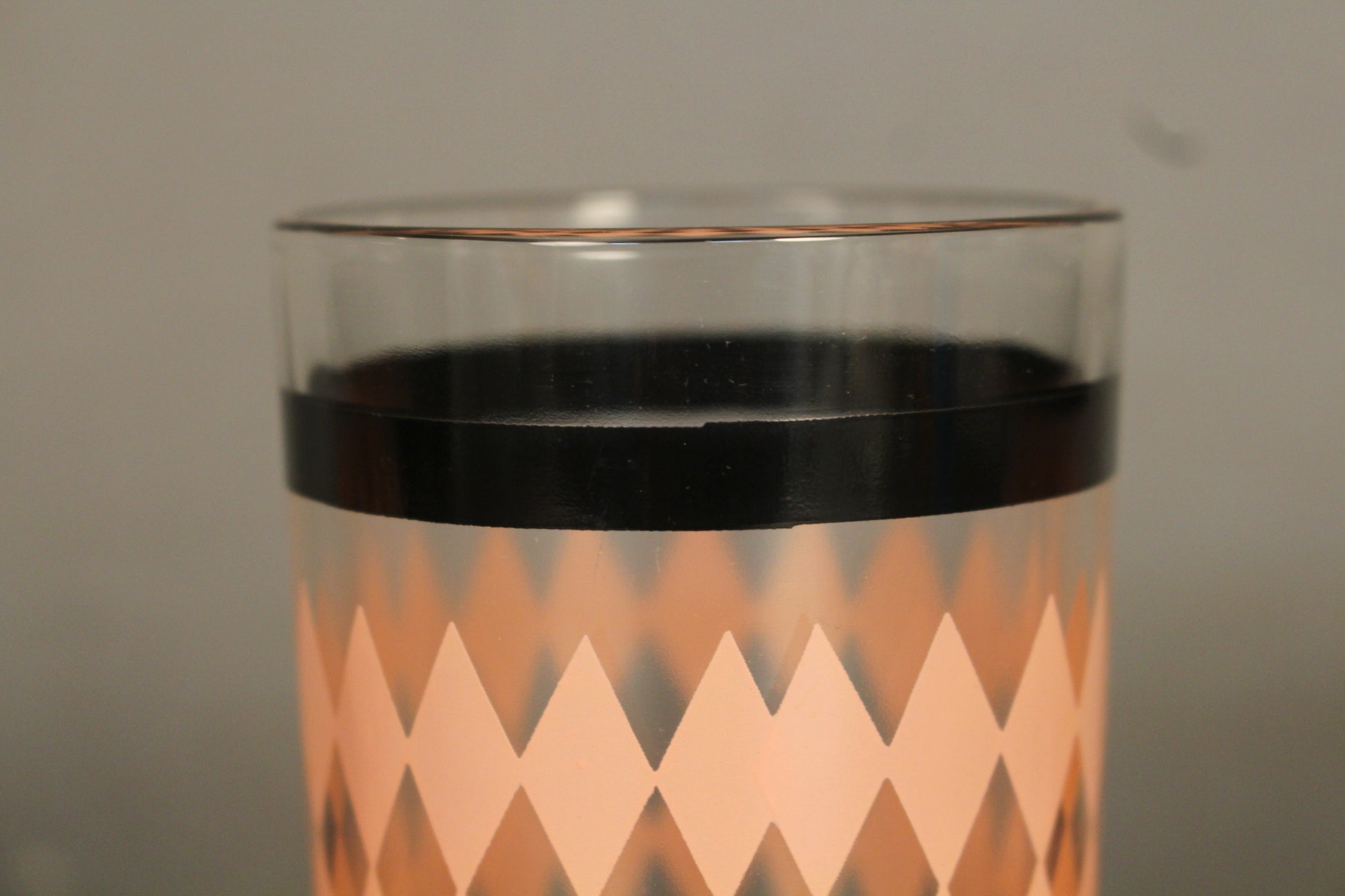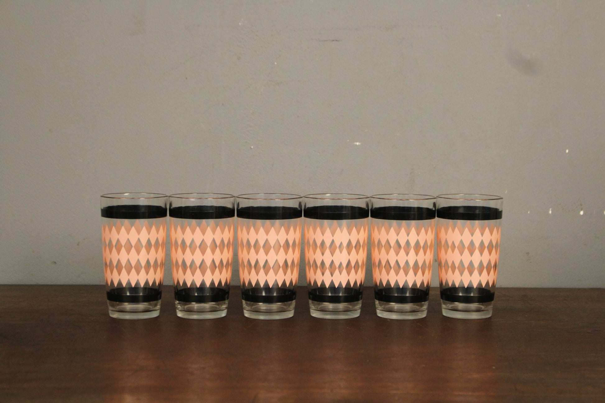 Darling set of six pink and black harlequin glasses. Made by Hazel Atlas. Time to host! In good condition, light wear.