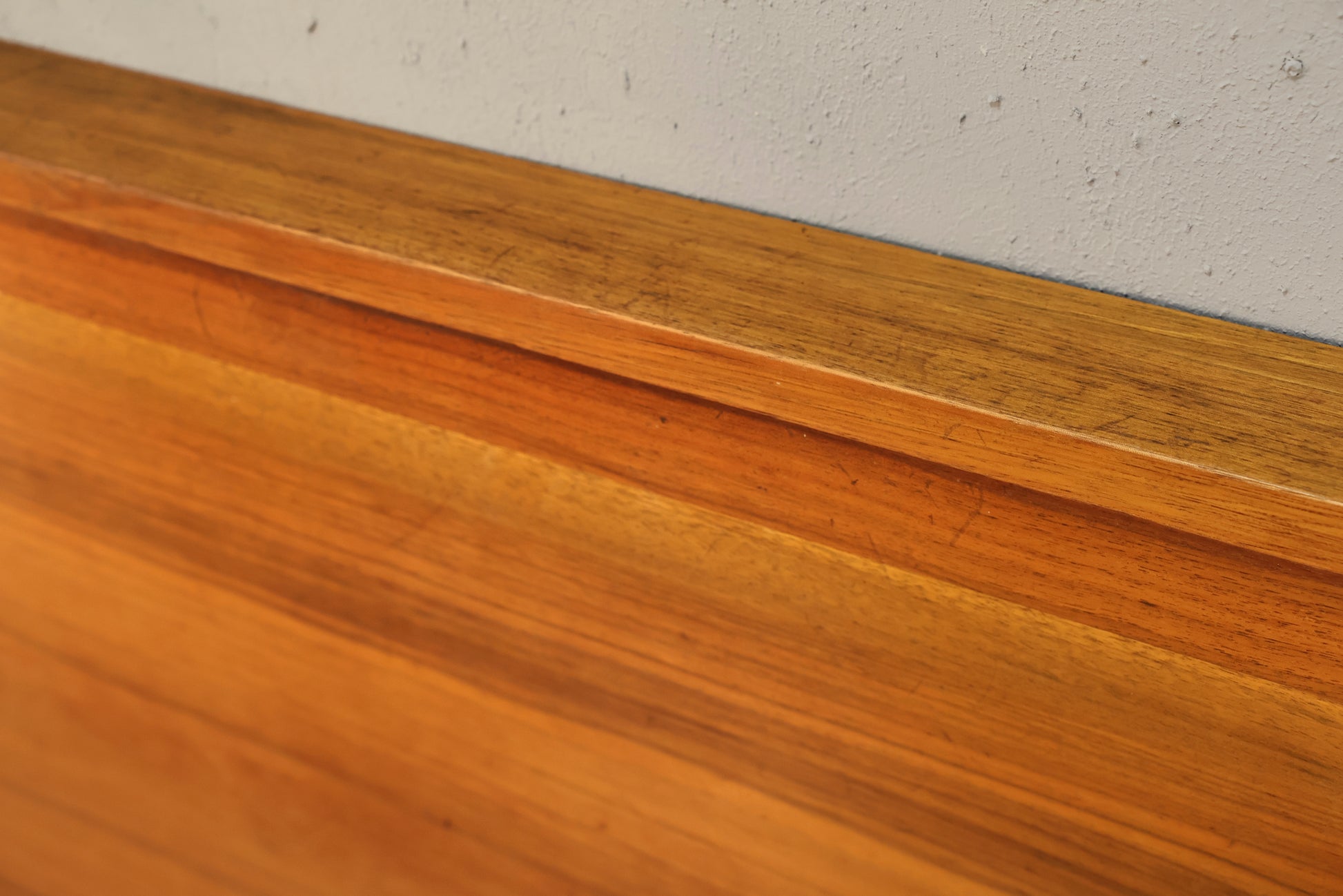 Simple walnut headboard that gets straight to-the-point so you can get straight to bed! Minor surface wear and some chipping to veneer at edges. Disclaimer: This piece is not available to view in-store. It is for sale online only, and by appointment at our NJ warehouse. Once purchased, it will be transported to our Manhattan store for pick-up or delivery. All sales are FINAL. Please call if you have any questions regarding the piece prior to purchase or to place a 15% deposit to see the piece in-person in our store.