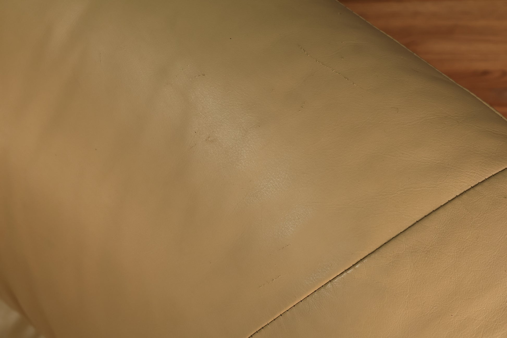 Fabulous 1980s Italian tan leather loveseat. Time to cuddle up with a book or a furry friend! In good condition, a few tears and scratches to the leather, some wrinkling and slight wear throughout. Width of seat is 36.5 inches. SOLD SEPARATELY. Disclaimer: This piece is not available to view in-store. It is for sale online only, and by appointment at our NJ warehouse. Once purchased, it will be transported to our Manhattan store for pick-up or delivery. All sales are FINAL. Please call if you have any questions regarding the piece prior to purchase or to place a 15% deposit to see the piece in-person in our store.