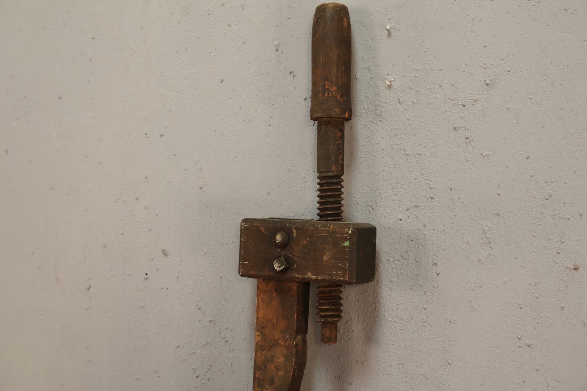 Rustic old wooden clamp. Makes a cool prop or art piece. In good condition, general wear.