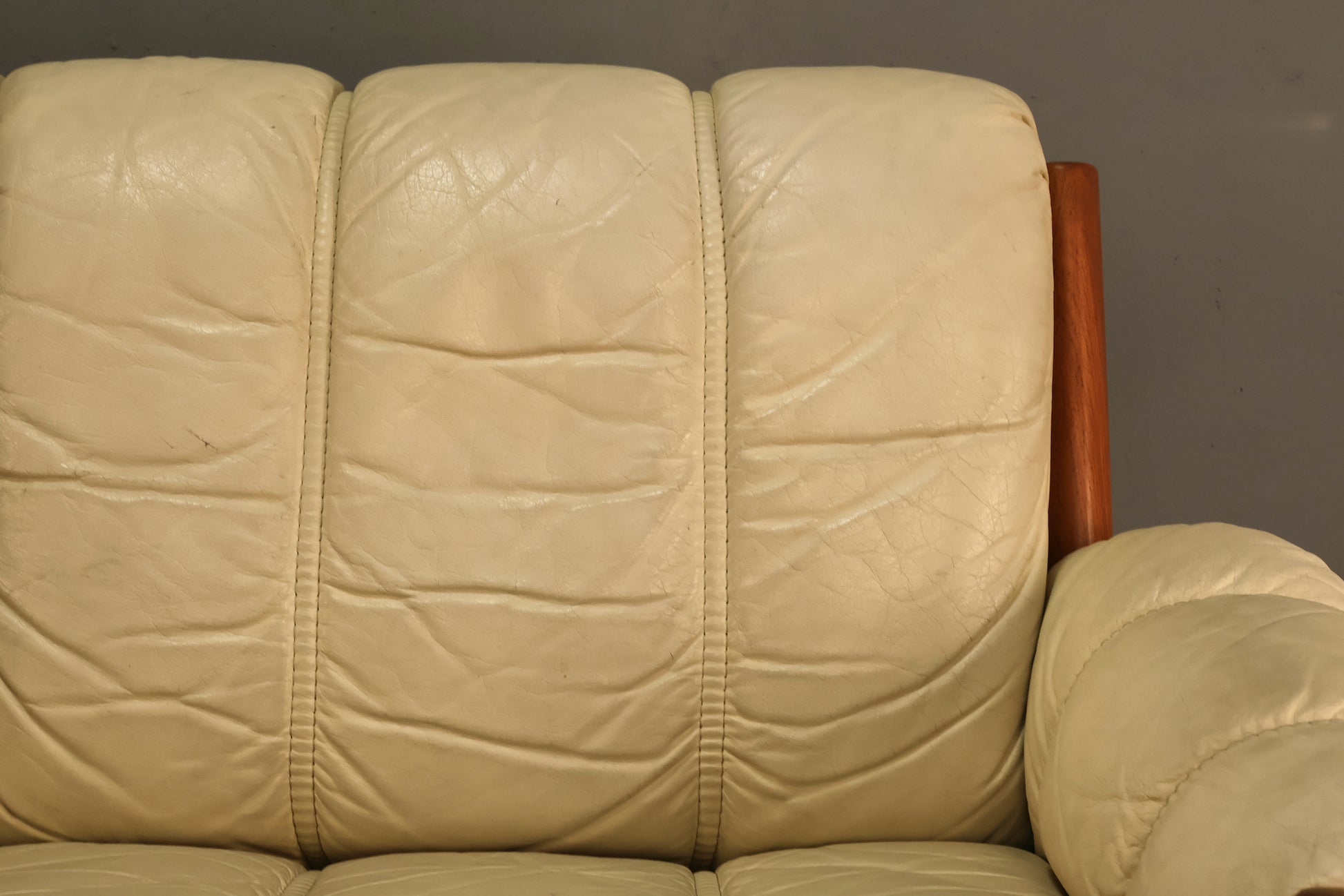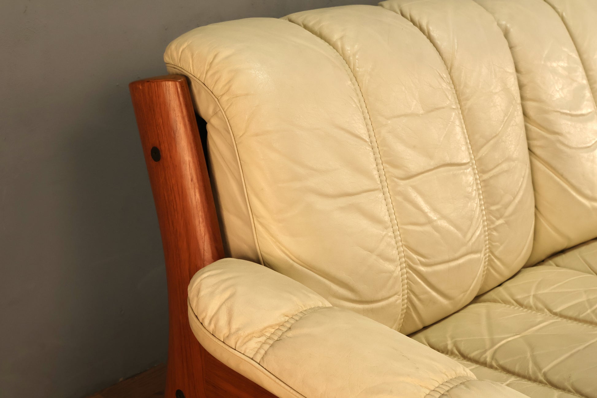 1970s Ekornes "Montana" Ecru Leather & Teak Sofa
