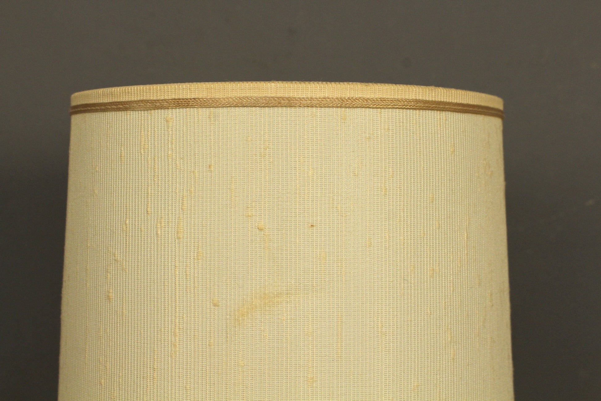 Funky chartreuse table lamp. Textured ceramic base. Lampshade has some stains and wear to the seams.