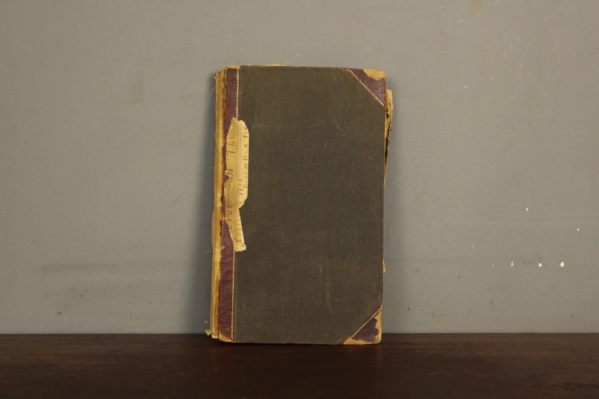 Collection of WWI photographs and maps. Includes written notes. Book is significantly worn and discolored from age.