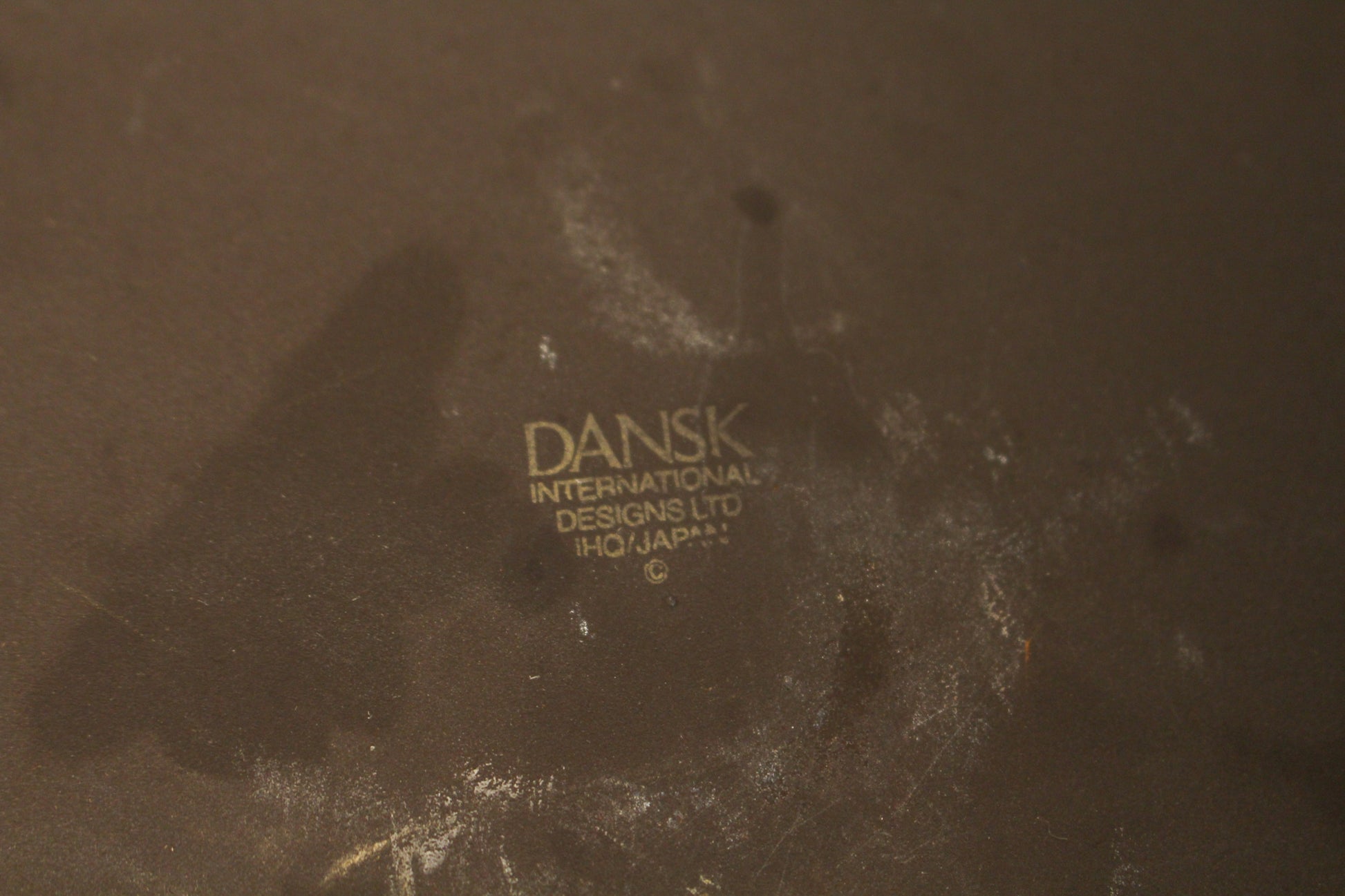 Sophisticated stoneware platter designed by Jens Quistgaard for Dansk. Well-sized plate features a matte brown finish to the edge and a glossy white glaze at the center. In good condition with some light surface wear and marks to the exterior.