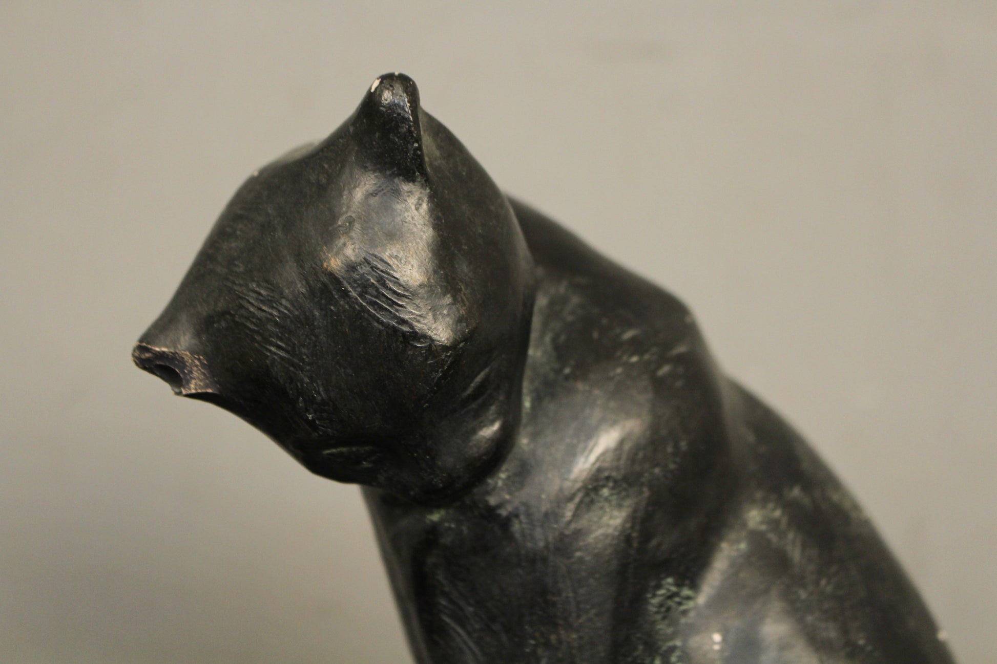 Elegant black chalkware cat sculpture. Made in the 1970s from Austin Productions. So cute! In good condition with some general surface wear and patina throughout.