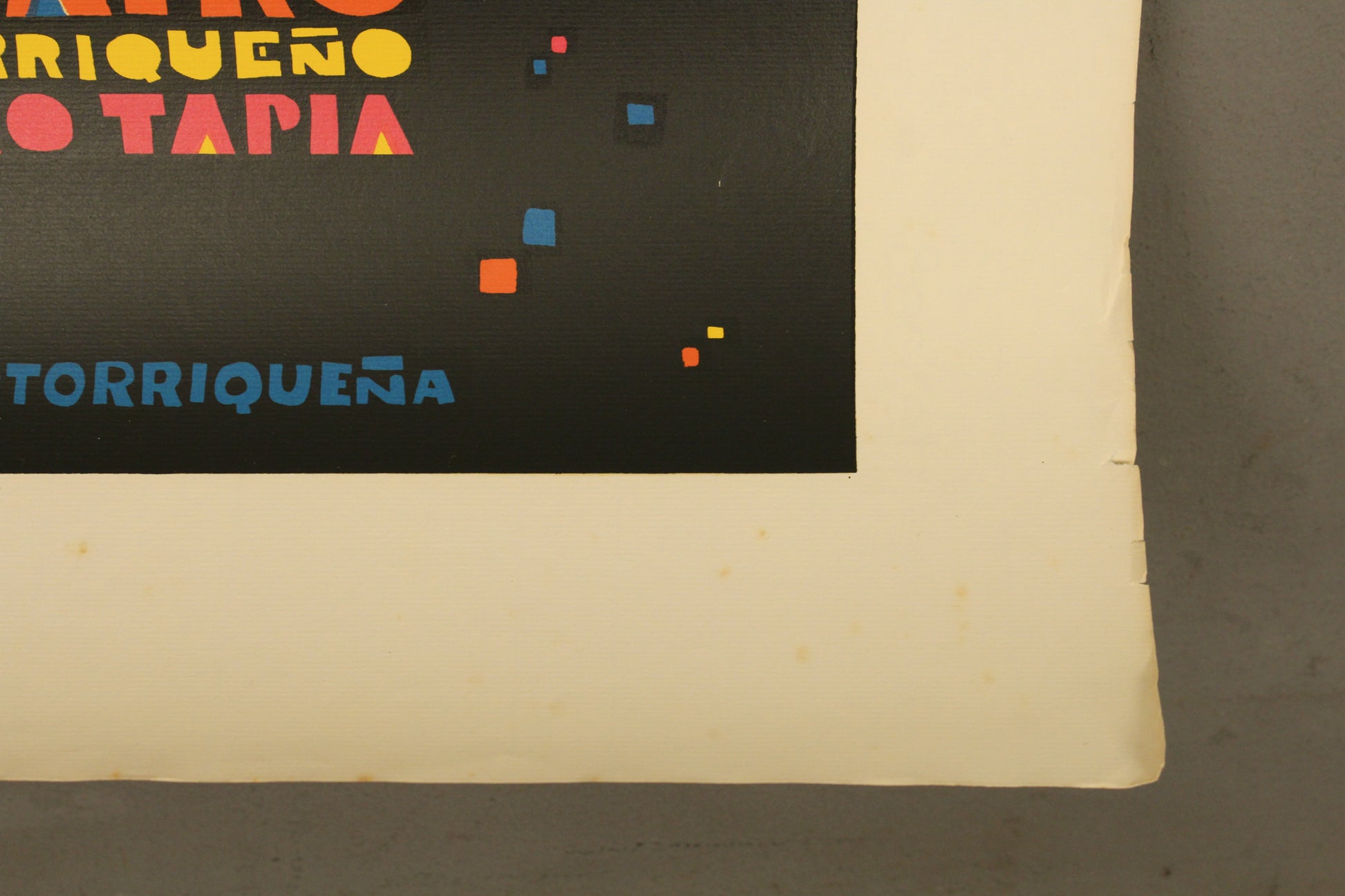 Original poster from a theater festival held in San Juan, Puerto Rico in 1973. Unframed. Minor discoloration, tears and fraying to edges. Handle with care.