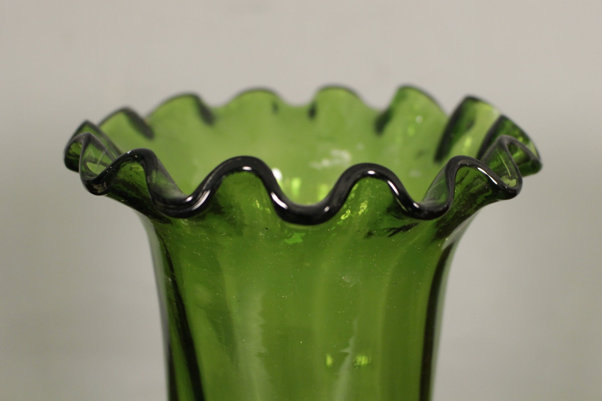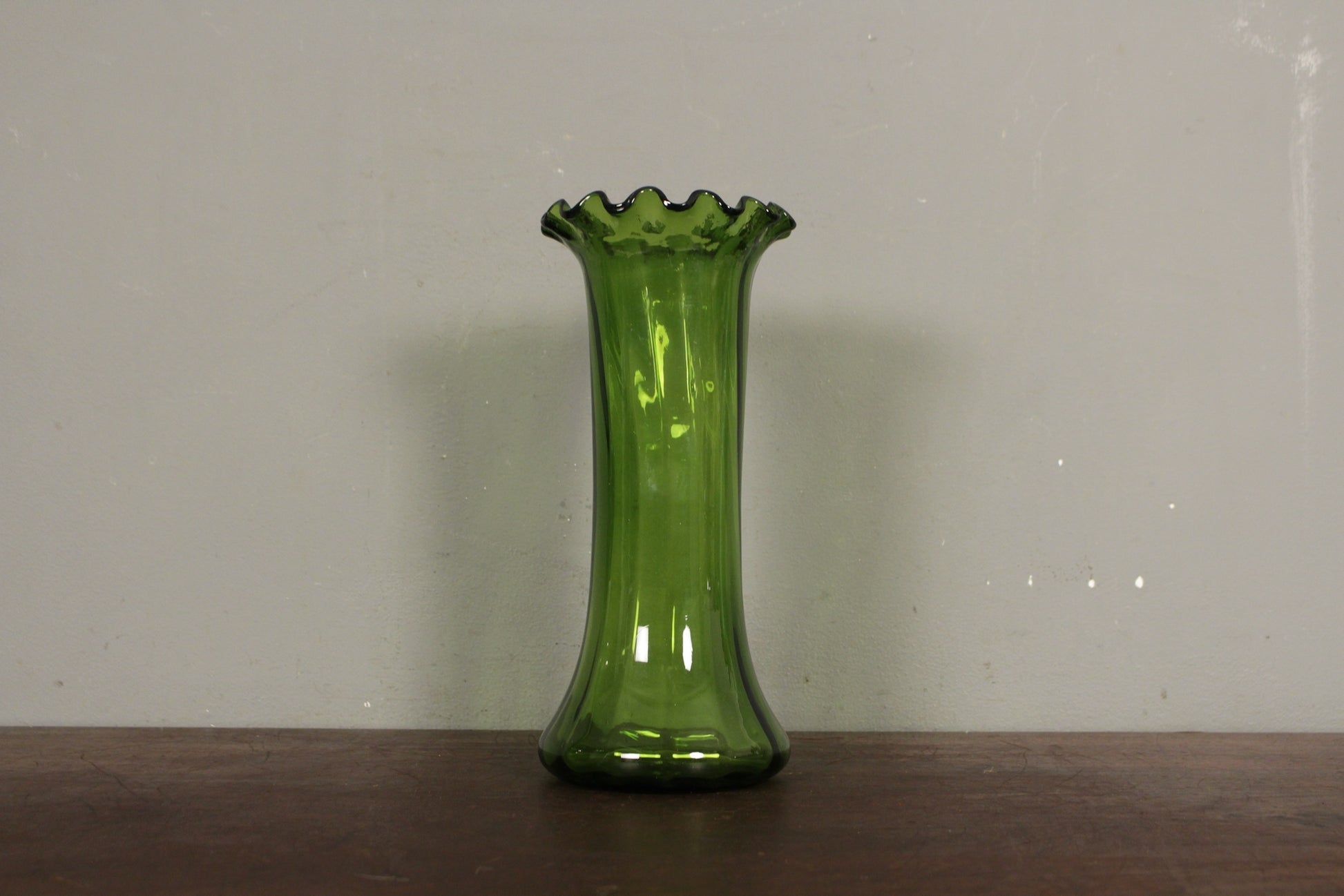 Lovely green glass vase. Ruffled rim. In great second-hand condition.