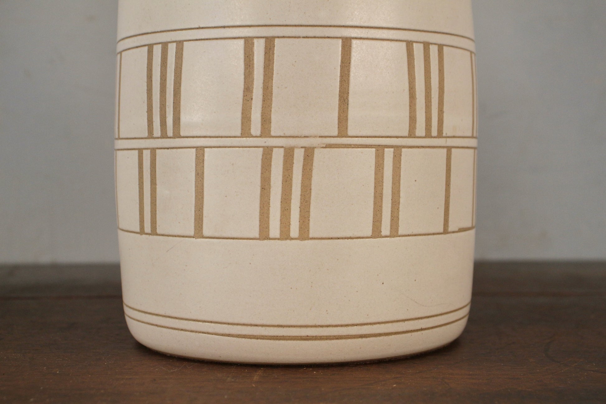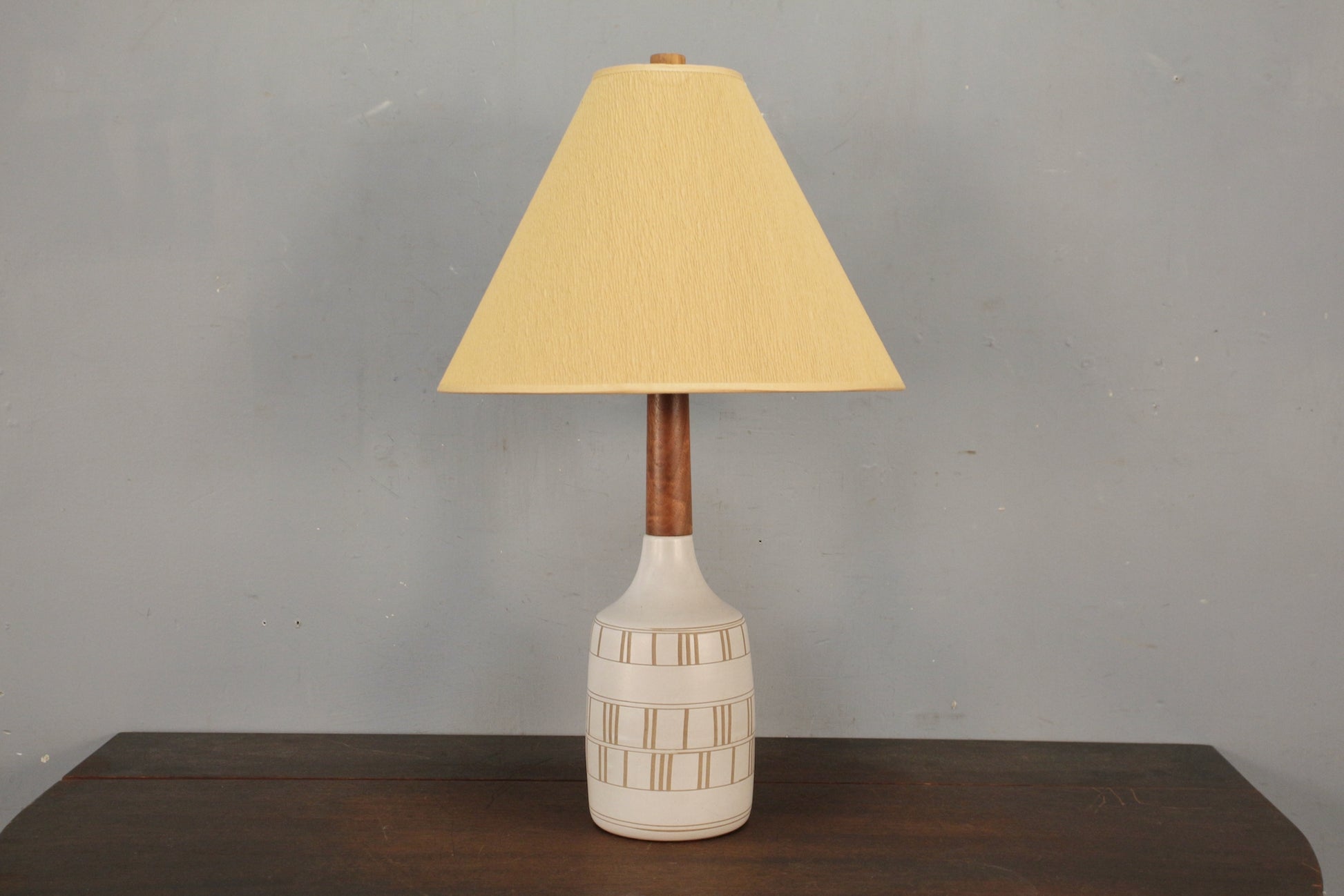 Dimensions: 16 diam, 27.5 h The best of mid century lighting! Designed by the iconic ceramic duo Jane and Gordon Martz for Marshall Studios. Sculpted walnut neck. In great second-hand condition with minor aesthetic wear. SOLD SEPARATELY. One is slightly taller than the other by .5 inches.