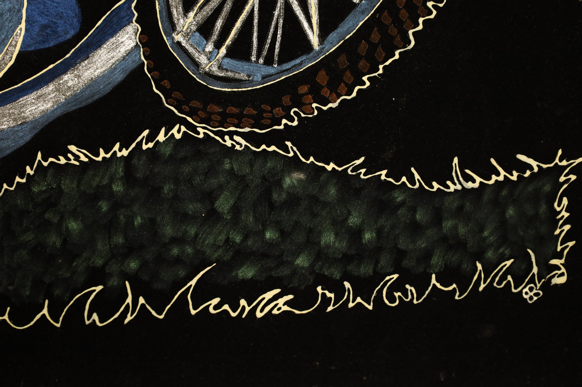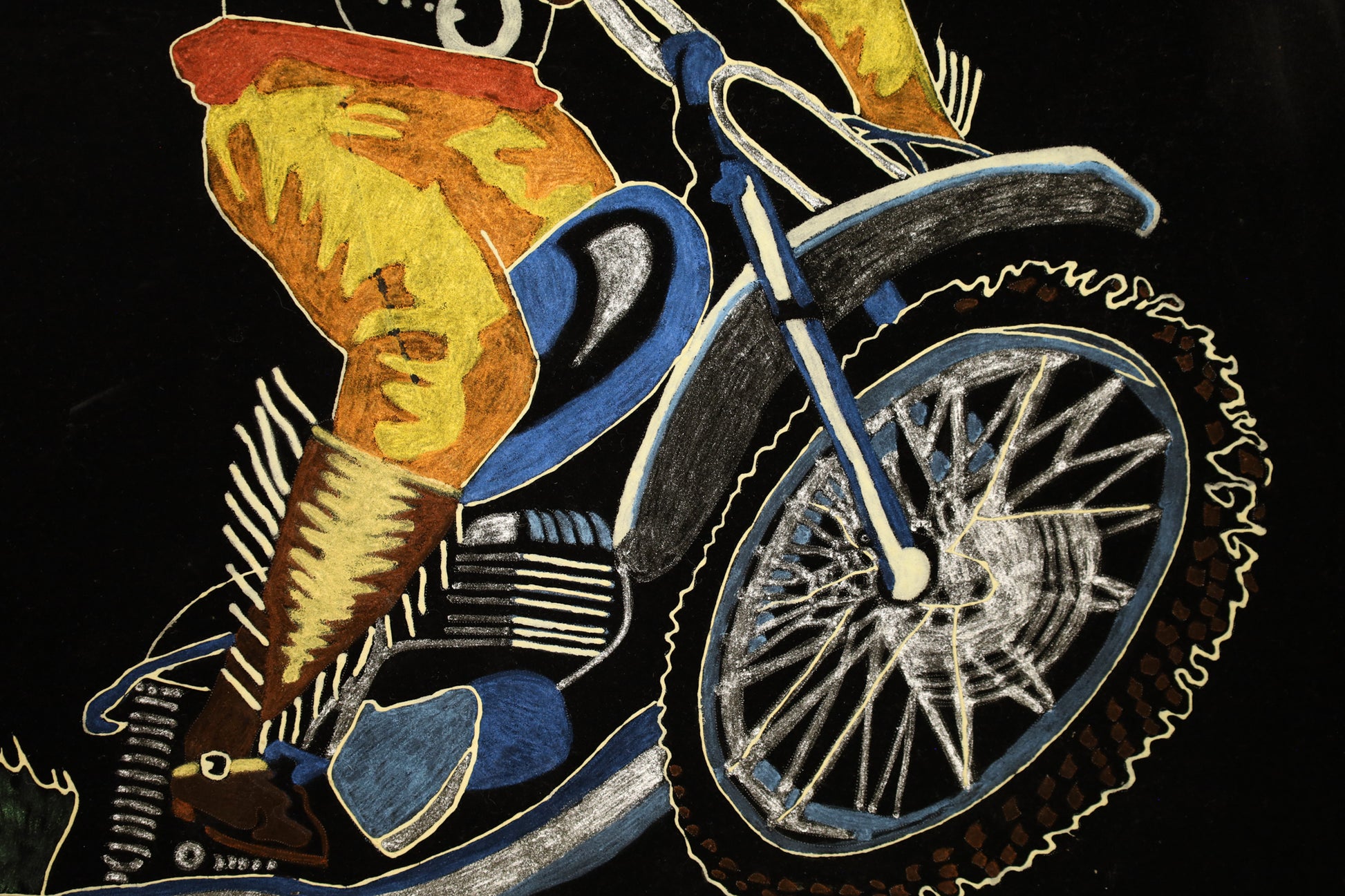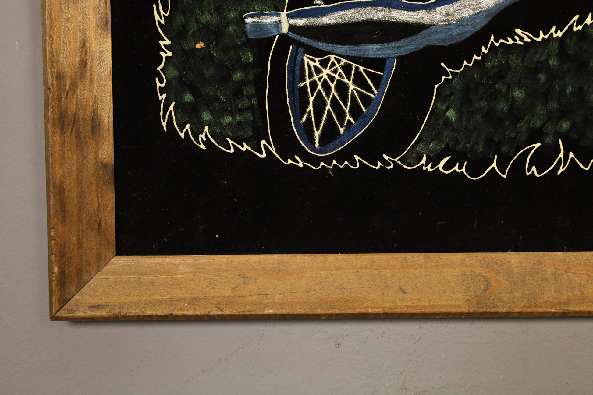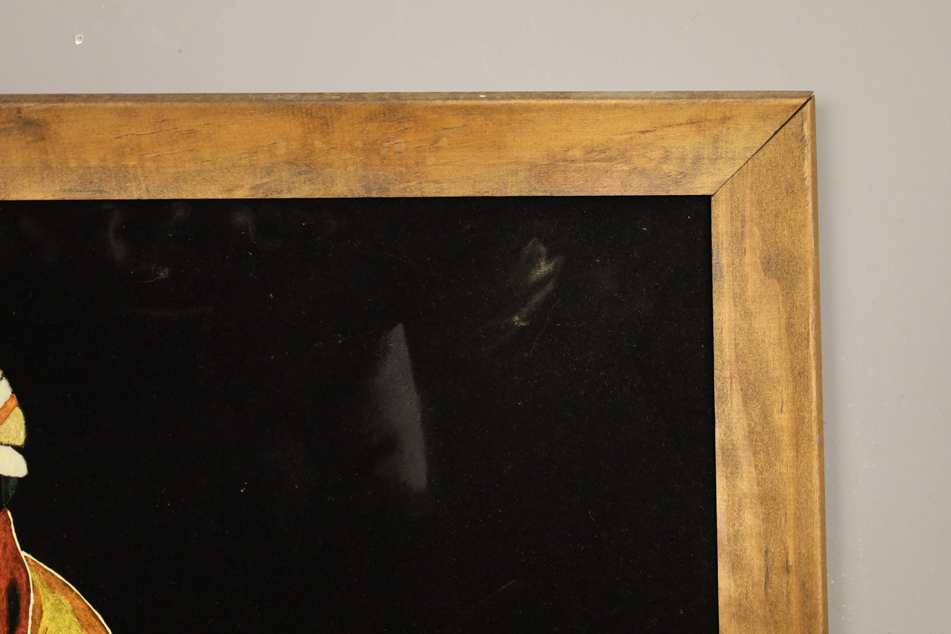 Retro velvet art that comes alive in the dark! Hand-painted daredevil glows in the dark. Comes in a wooden frame. In good condition, with light scratches. Finish is fragile and not encased in glass. Can be easily scratched, handle with care!