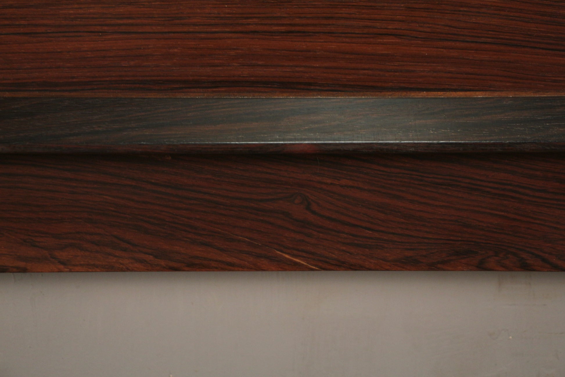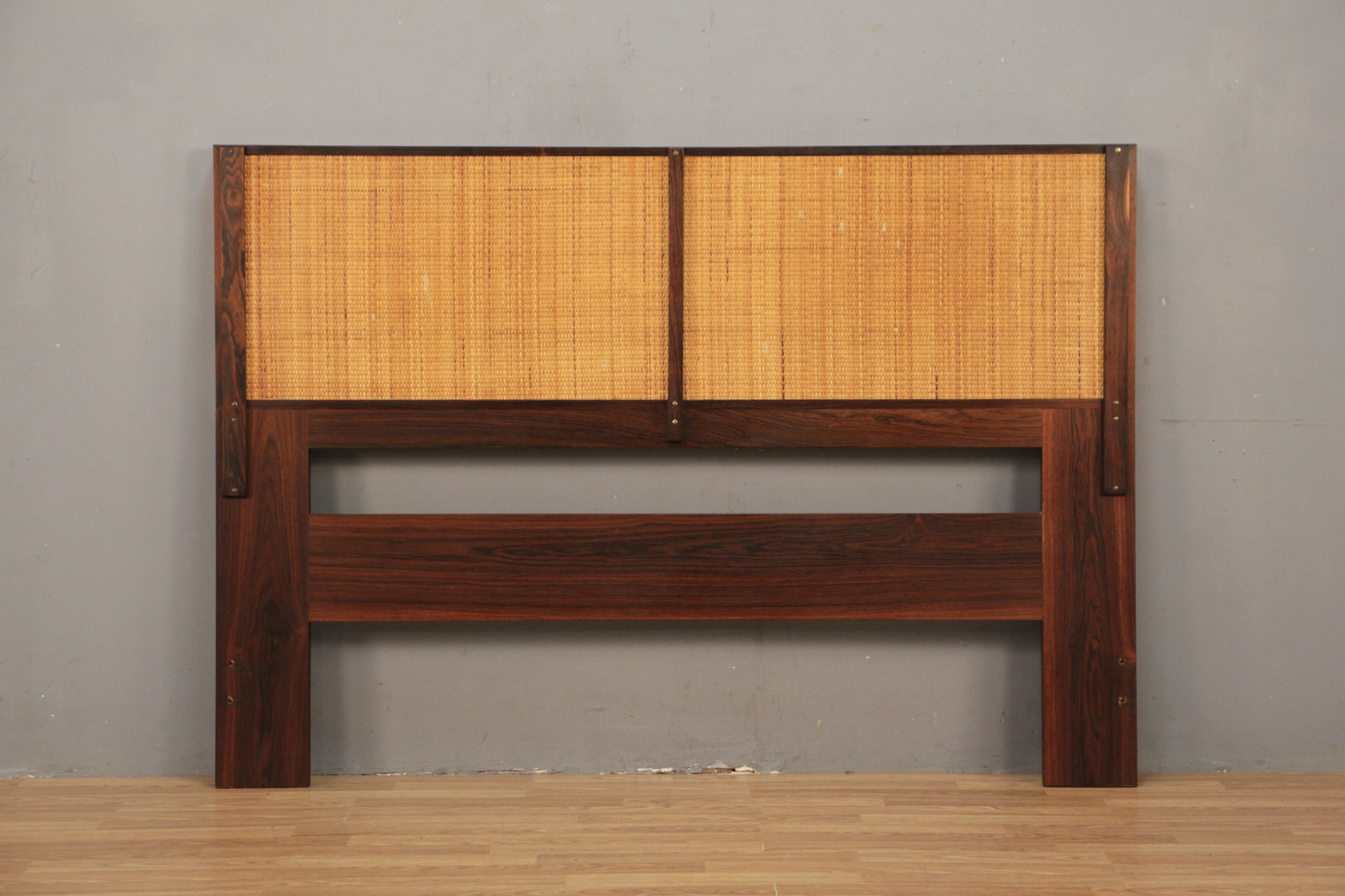 Stunning Danish rosewood queen-sized headboard with a reversible cane-accented panel that can be switched around for a sleek full rosewood look! In good condition with some wear to cane paneling.