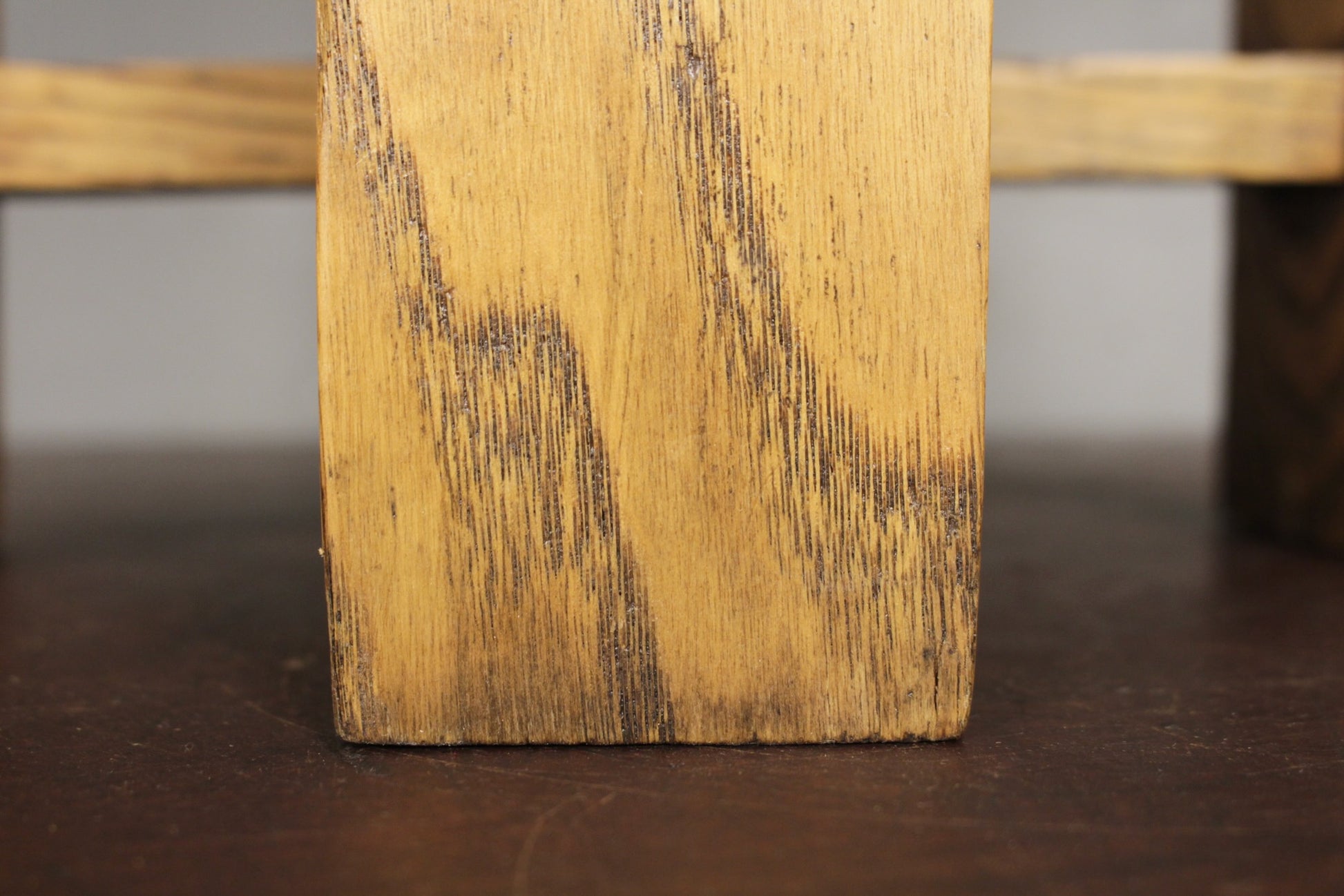 Distressed wooden plant stand with a charming farmhouse feel. Simply made, great for any style space! In good condition, wobbles a bit when forced.